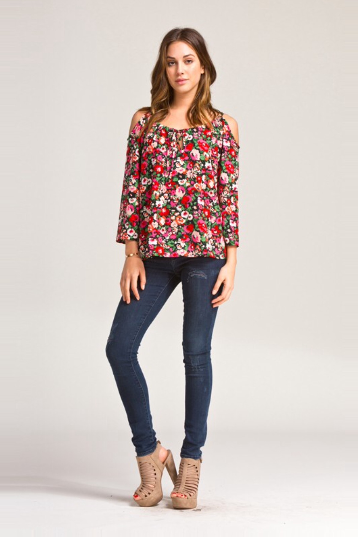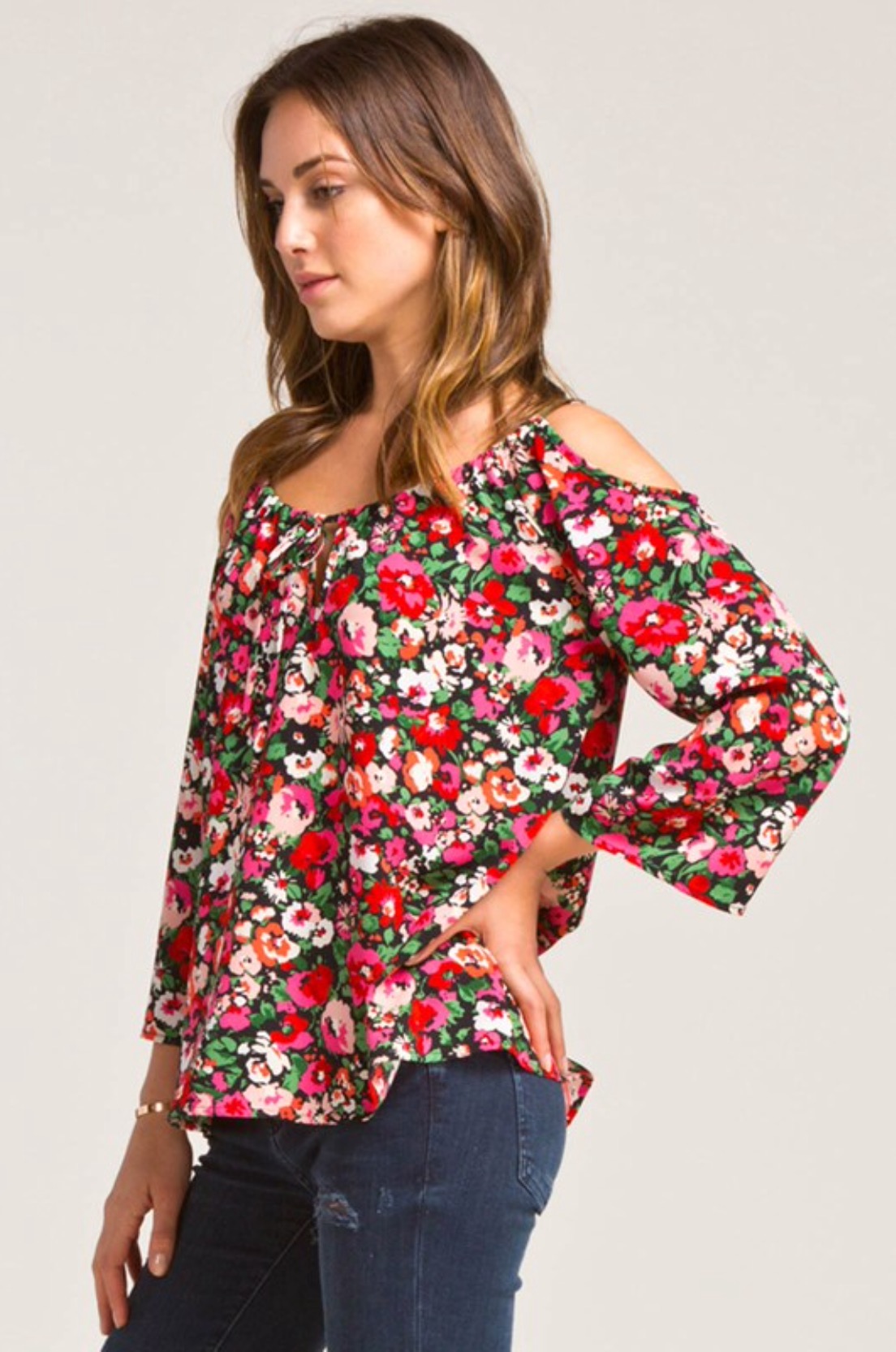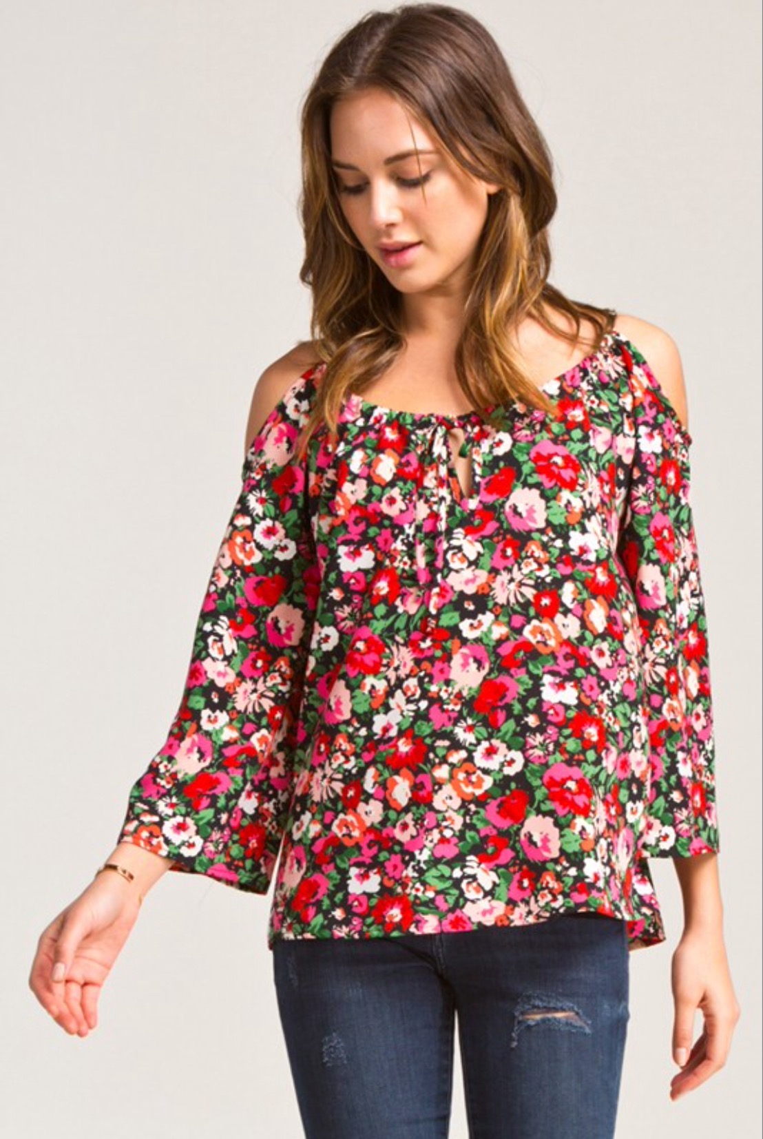 Floral Open Shoulder Boho Top