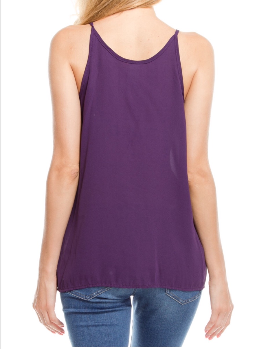 Adorable chiffon Tank that can be dressed up or down. Available in multiple colors.