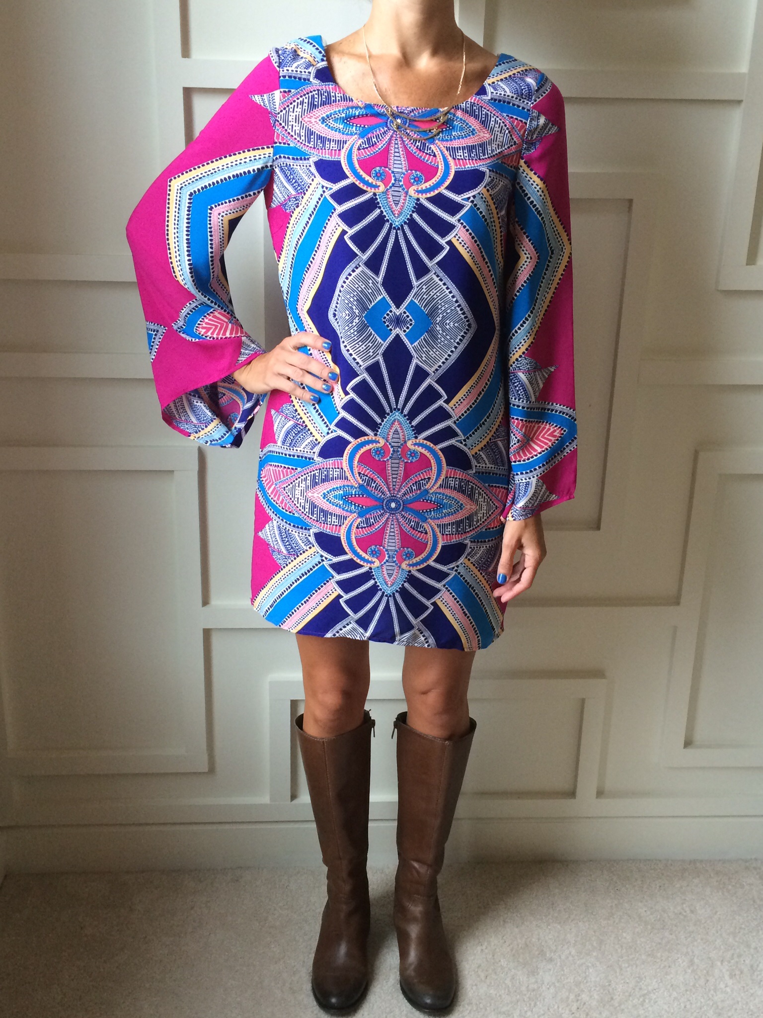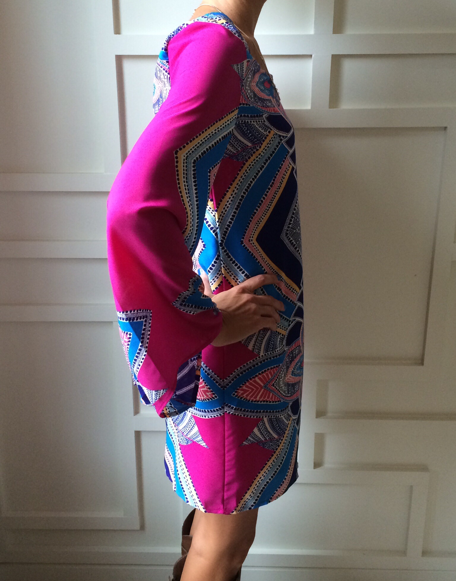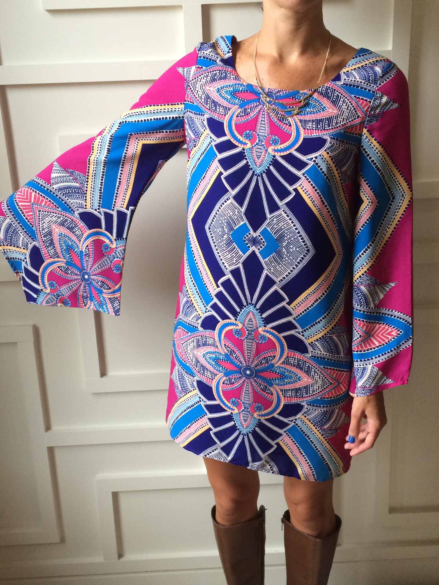 This adorable boho shift dress looks perfect with sandals and will transition flawlessly in to your fall wardrobe with brown or black knee high boots! The bright vibrant colors are amazing and the angel sleeves are a fun and unique touch.